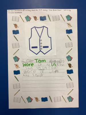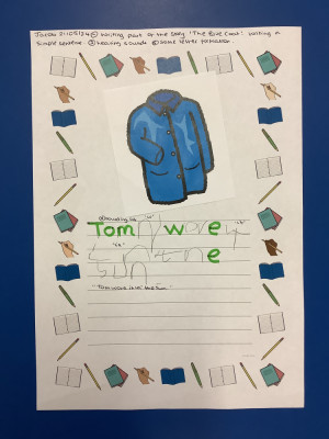 The Blue Coat We are authors! We wrote part of the story 'The Blue Coat'. The children did an amazing job at sounding out their words and forming their letters.